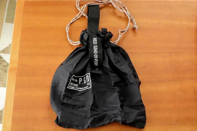 こちらのバッグも、ハンモックなどに使われる薄くて丈夫なパラシュートナイロン生地が使われています。
