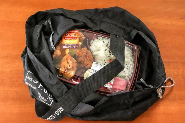 コンビニのお弁当を平らなまま持ち運べちゃいます。これは買い出しが捗りそう!
