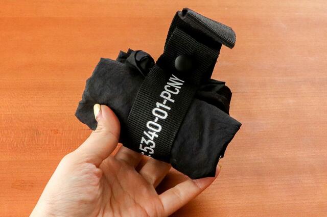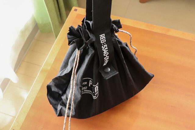 パラコードの紐がついていて、巾着のように口を絞れるんです。