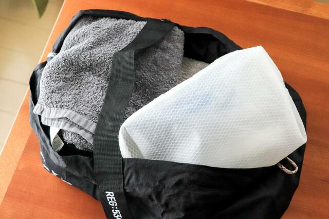 大浴場に行くときにバスタオルや下着、スキンケアアイテムなど一式を入れて持ち運べました!