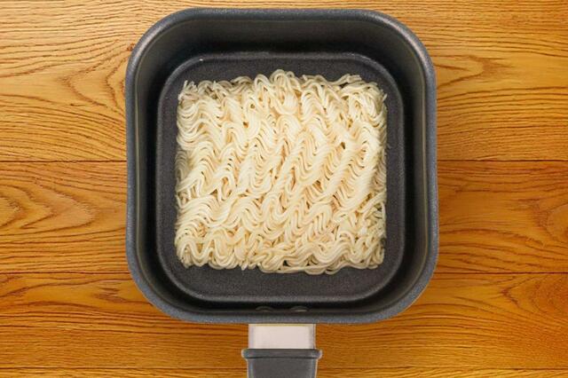 15.5cm×15.5cmとコンパクトですが、四角い袋ラーメンがすっぽり。