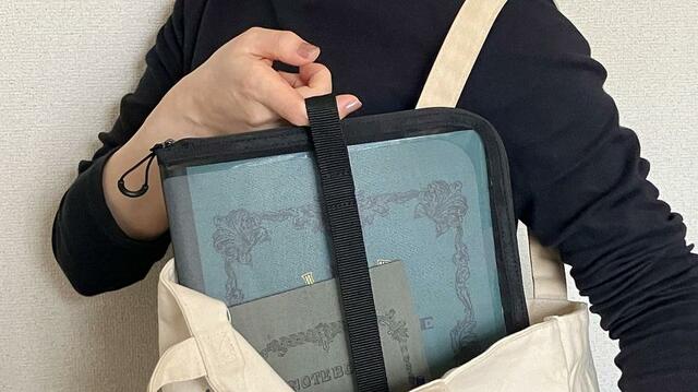 クタッとしがちな布のバッグに入れても紙の角が丸まらず、細部の使いやすはさすが無印良品。