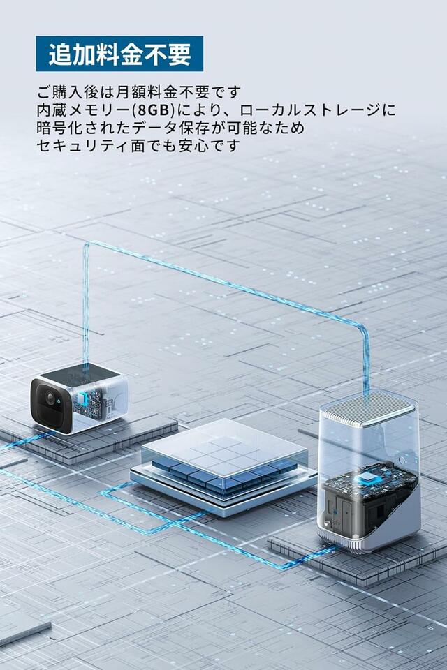 「Eufy Security SoloCam S220」には8GBのローカルストレージが内蔵されており、直接暗号化されたデータが保存されるため、セキュリティ面でも安心です。