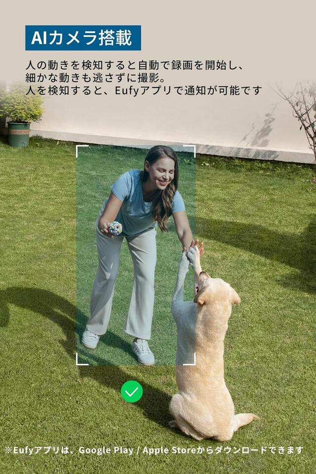 2K(約300万画素)での高画質な録画に対応。しかも、AI(人工知能)センサーにより人の動きを検知して自動で録画をスタートしてくれます。必要な映像だけを、細かな動きも逃さずに記録してくれますよ。