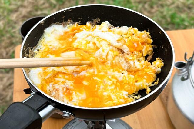 ぐらつきが少ないので、油をひいたり卵を割り入れたりといった作業もスムーズで、ストレスなく料理することができました。