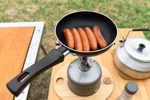 キャンプでも、さっと何かを焼くならやっぱりフライパンが便利。