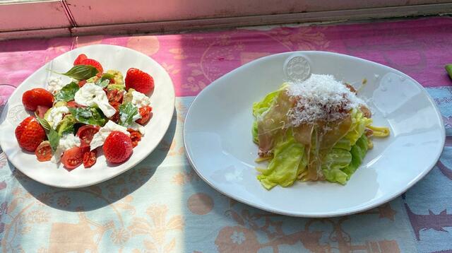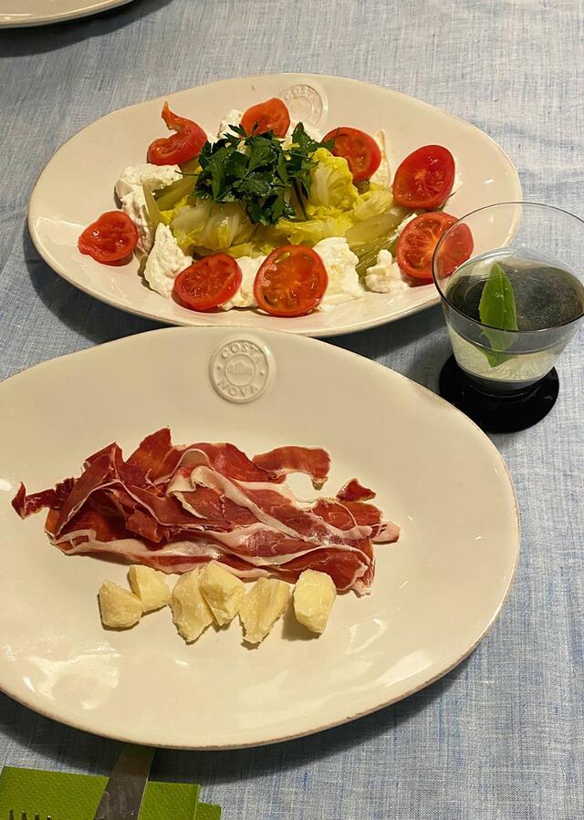 茹でキャベツとカプレーゼ。イベリコハム、ゴロンとしたパルミジャーノ。