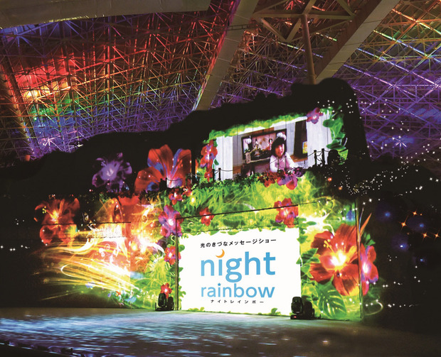 古来よりハワイより信じられてきた、幸せになれる神秘の現象「ナイトレインボー」へ、スパリゾートハワイアンズの光のフラガールが導いてくれる。