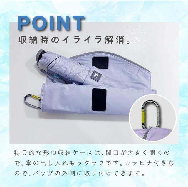 またケースはカラビナ付き。バッグにひっかけておけば、傘を使いたい時にすぐに取り出せますし、雨で濡れた傘をバッグ内に入れなくてすみますよ。