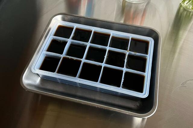 まずは製氷器にアイスコーヒーを入れます。氷になる過程で膨脹するため8分目を目処にするのがいいそう。