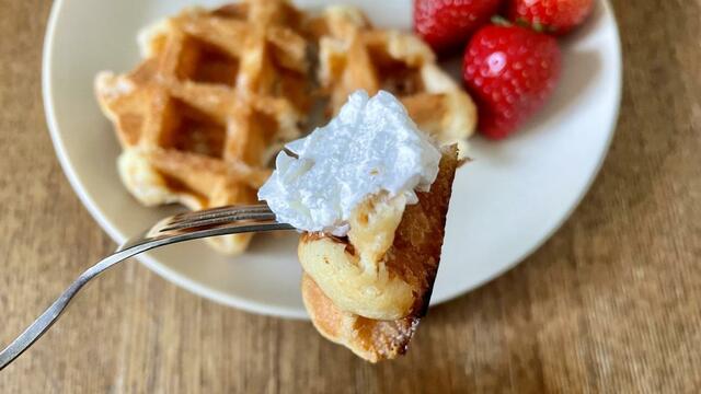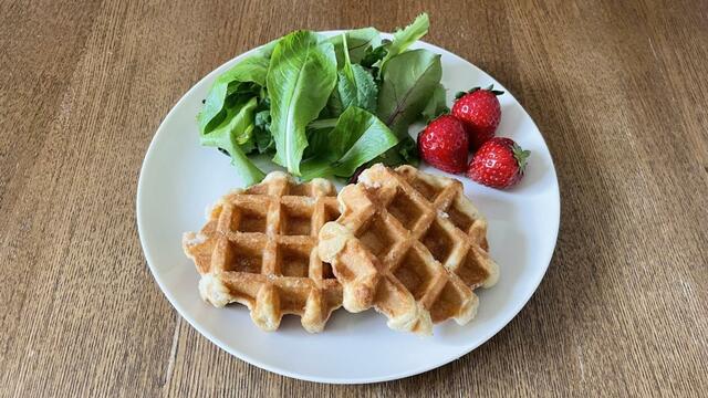 まずは、焼いたワッフルに何もつけないで食べてみました。