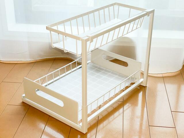 さまざまな種類がある中から筆者が選んだのは、ネジも工具も不要なSIUSAの「シンク下 スライドラック」というアイテム。