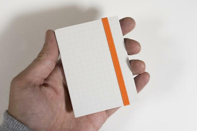 手のひらサイズのコンパクトなカラーバンドつき手帳のように見えます。