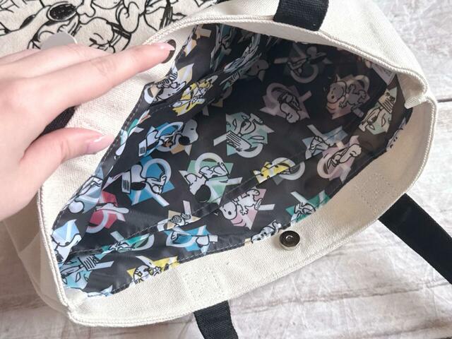 さらに内側にも注目。なんと、裏地までスヌーピーの75周年を記念した総柄仕様なんです…!