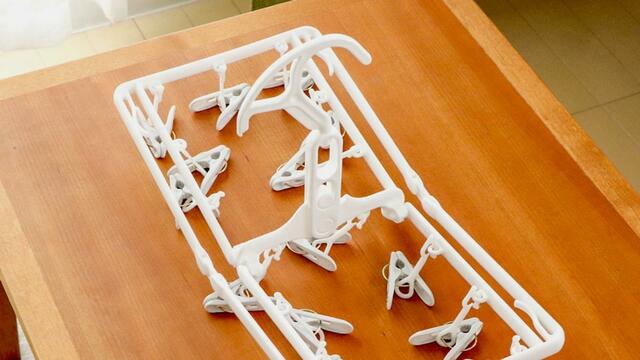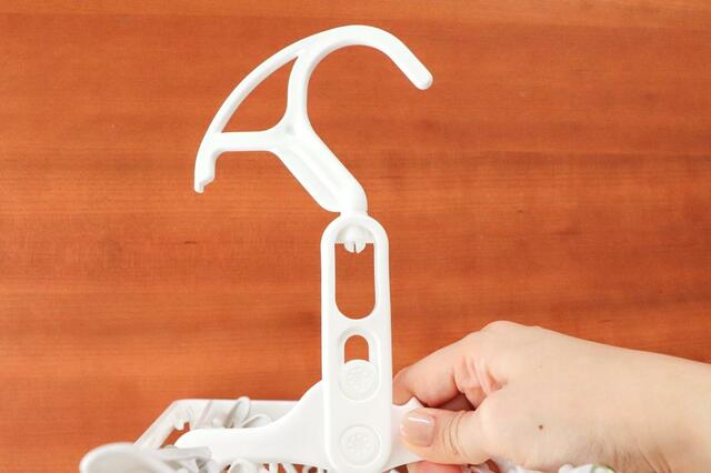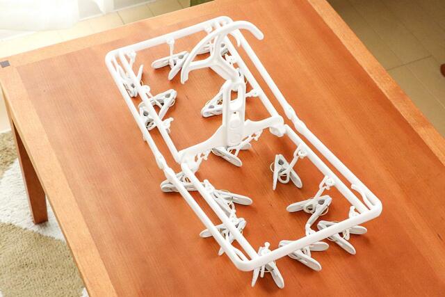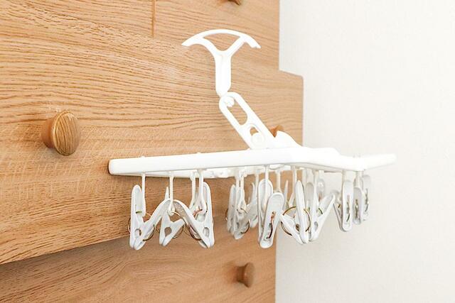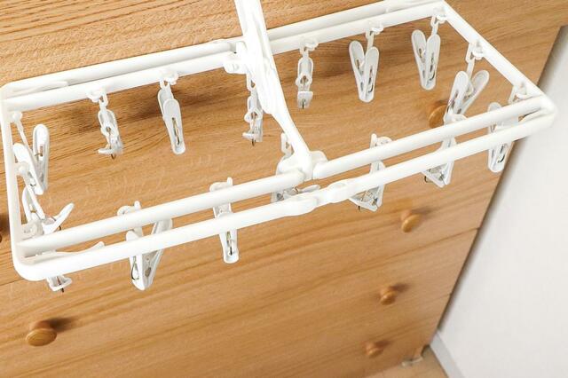 購入したのは、ニトリの「室内&外干し角ハンガー(16ピンチ ミル)」。折りたたみ式のピンチハンガーです。