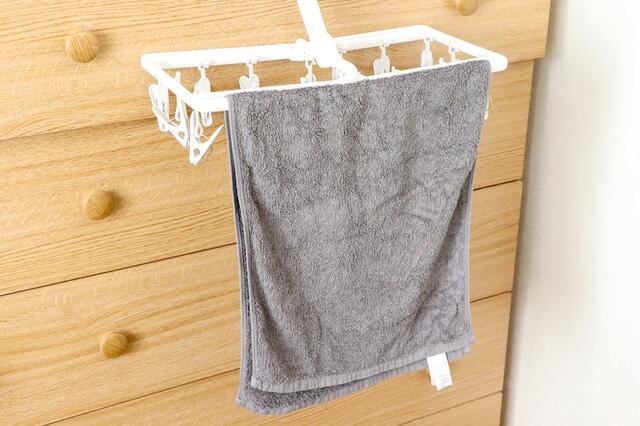 ここにタオルを干すと内側の洗濯物を目隠ししてくれる効果もあります。