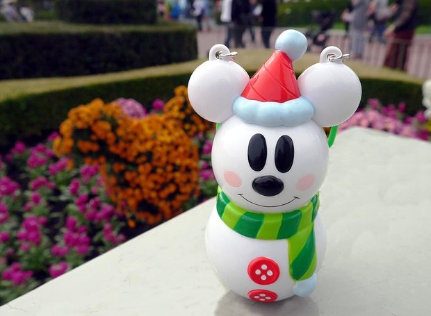 そしてもうひとつは赤やピンクが基調となったクリスマスらしいバケットも登場。フタに描かれたスノーマンのミッキーマウス&ミニーマウスが可愛いですね。