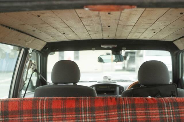 ※内装に使用している木材は、安全性に考慮した材質・厚さを使用。この状態で車検を通過していることも確認済みです。(編集部)