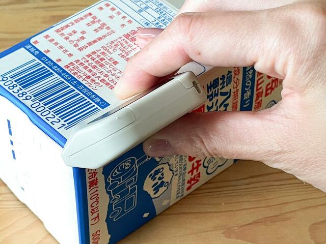 垂直に刃を出したいときも、箱に置くように沿わせればまっすぐに刃が入ります。