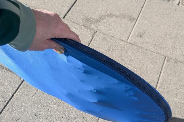 サイズは少々大きいものの、持ち手がついていて薄いので、手で持ち運ぶのも簡単です。