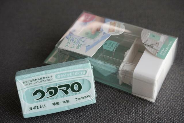 Tシャツの首周りの汚れや、靴の汚れを掃除するときにウタマロ石鹸を使うとよく落ちるんですよね〜。
