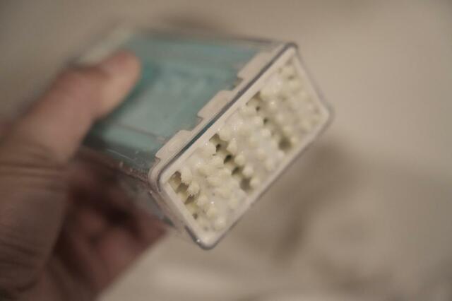次に上部の通気口から水を入れて石鹸を濡らしてあげたら、準備は完了。