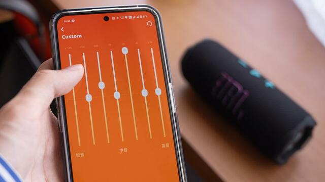 JBLの専用アプリにてイコライザーの設定をすることが可能で、低音を弱めれば落ち着いたアンビエントな音質も楽しめます。個人的には、仕事のBGMとしては低音を弱めたい派なので、これが結構ありがたい。