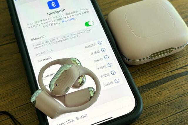 そんなときに見つけたのがスリーコインズの「オープンイヤーワイヤレスイヤホン」です。