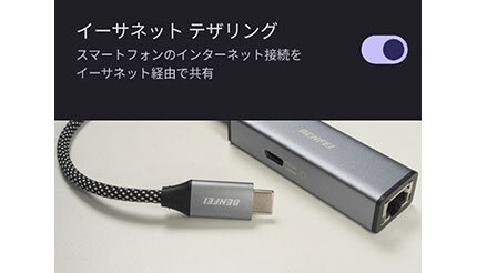 対応スマホと有線LANアダプターを使えば「イーサネットテザリング」が使用できる