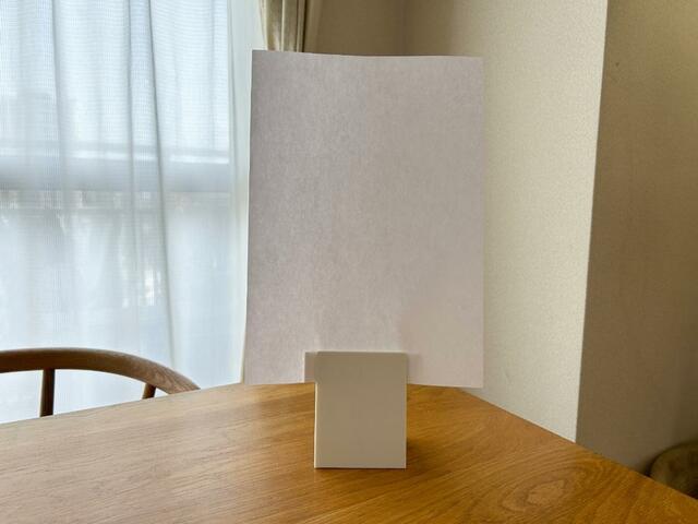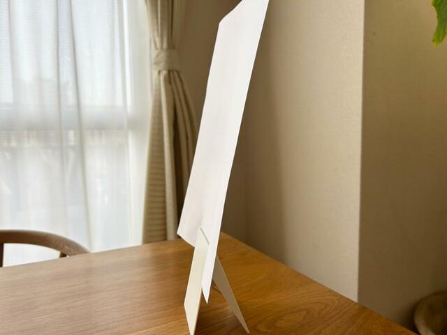 まるで手で持つときのように少し紙が曲がった状態になるから、立ち姿がキープできるのだと思います。
