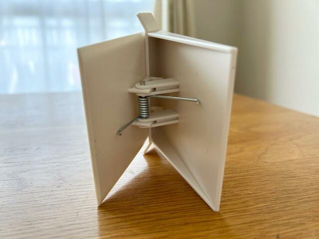 下の部分を指で押さえると、洗濯バサミを使う要領で、上部にスキマが生まれます。