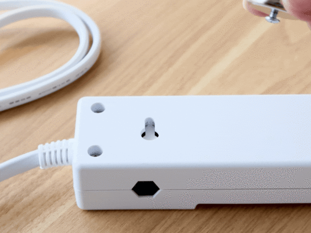 設置の方法は、電源タップ裏のフック穴に本体をはめこむだけ。