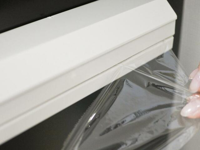 それだけではなく、そのまま面に貼りつけた状態でラップを引き出せるんです!