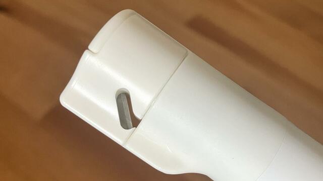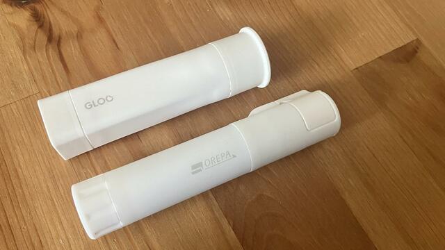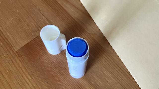 通常のスティックのりと比べると、蓋の部分がちょっと長めでボディがスリムな細長い形。