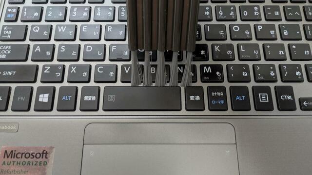 キーとキーの隙間を滑らせるようにブラシを動かすと、ブラシが硬いのでホコリなどもしっかりかき出してくれます。