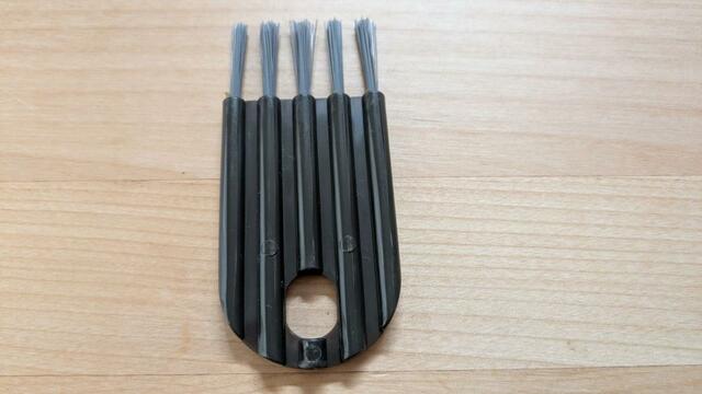 大きい黒ブラシは硬い毛先が横に並んでいる形。持ち手の部分はICカードや銀行のカードくらいのサイズ感です。