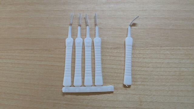 白ブラシは5本が繋がっているので、使うときに切り取って1本にします。