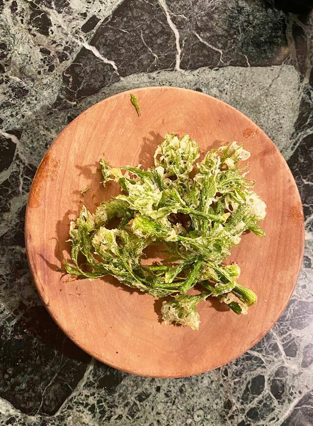 スナップエンドウの酢味噌和え。たらの芽の天ぷら。