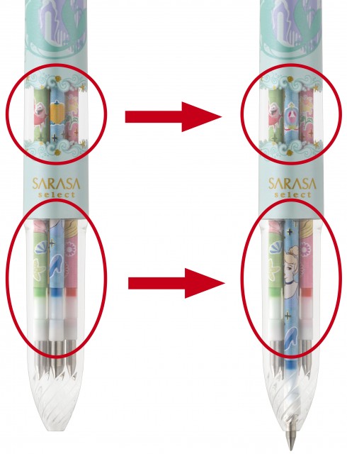 続いて紹介するのは、外側のボディと、中に入れるリフィル(替芯)を別々に購入し、自分好みのペンにカスタマイズできるボールペン「サラサセレクト」のディズニープリンセスデザイン。