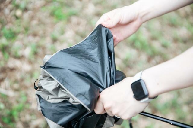 しかしサンブロックアンブレラは骨が8本だったのに対し、こちらは6本になっています。そのおかげで開閉の手間が少なくなったようにも感じられました。