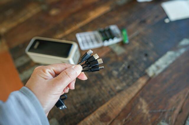 電池ひとつひとつにUSB-Cポートがあるため、コンセントがなくともモバイルバッテリーからすぐ充電可能。