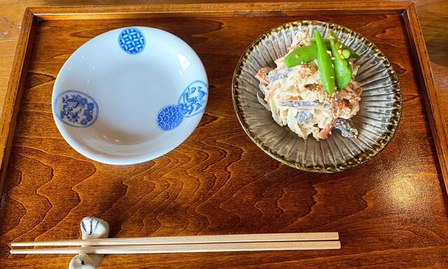 開店時刻ぴったりに「桶ヤ」に行き、切り干し大根のゴマ酢味噌和え、