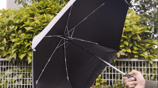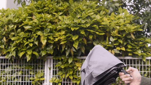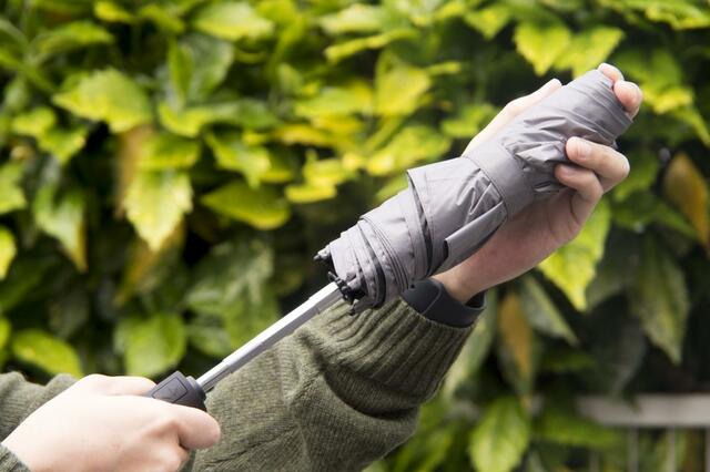 一般的な自動開閉式の折りたたみ傘と同じく、軸を縮めるのは手動です。