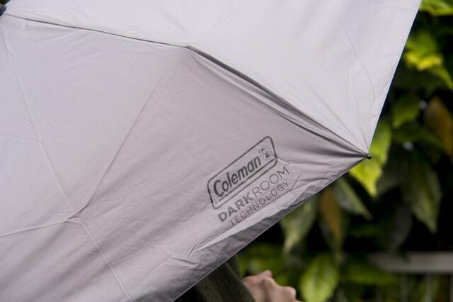 収納袋にも書いてある通り、この傘にはコールマンのテントではお馴染みの「ダークルームテクノロジー」が採用されています。