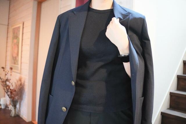 でも、今の時期は暑くなったと思ったら少し肌寒くなったりもして、簡単に羽織れて脱ぎ着しやすく、フォーマルでもカジュアルでもいける服が欲しいと思い、ユニクロとJW ANDERSONがコラボした「感動ブレザー」を購入。これが大活躍中なんです!