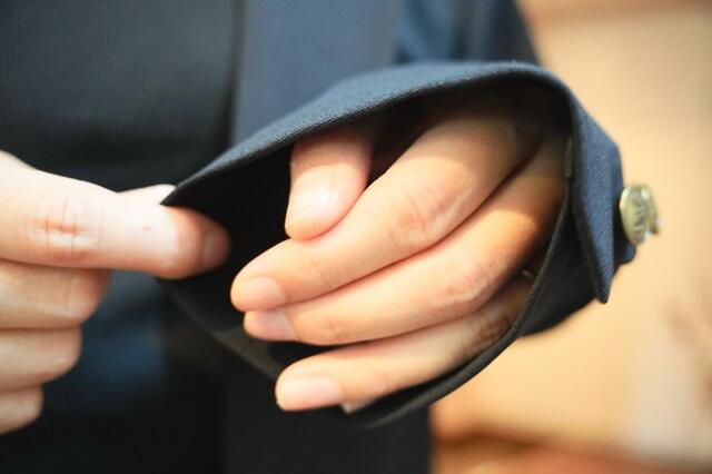 フロントや袖にはJW ANDERSONのロゴが入ったメタルボタンがついており、ボタンだけで個性を感じられるのがいい。こういう細かいところがオシャレな服って、気分が上がりますよね。