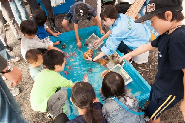 子ども向けの大きなくじらの遊具や、生きた魚介類に触れるふれあい水槽などもあり、家族連れでも充分楽しめるイベントです。