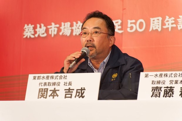 祖父の代から魚介類の卸を営む東都水産株式会社代表取締役社長 関本吉成氏:「時代が変わっても、場所が変わっても魚河岸の役目は変わらない。これまで受け継いできた伝統を豊洲にも引き継いでいきたいと思います」