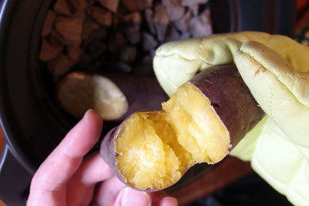 あの石焼き芋特有の、ちょっとほろ苦い、ぱりっとした皮。