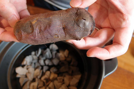 石を並べ、芋を入れ(残念なことにあまりたくさんは入りませんが)、